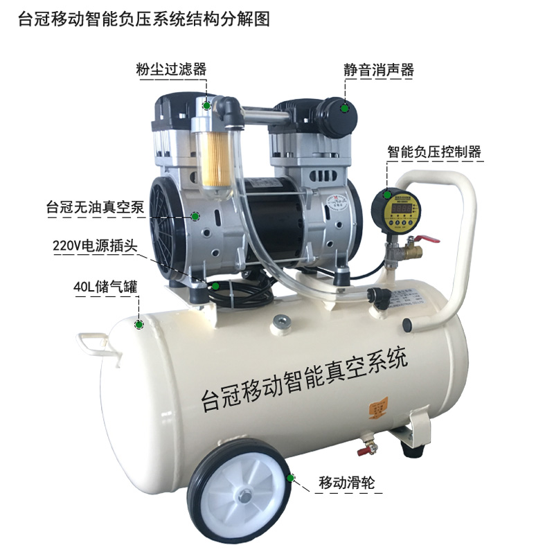 配有一個40L加厚真空儲氣罐,真空度和流量達到穩定性。